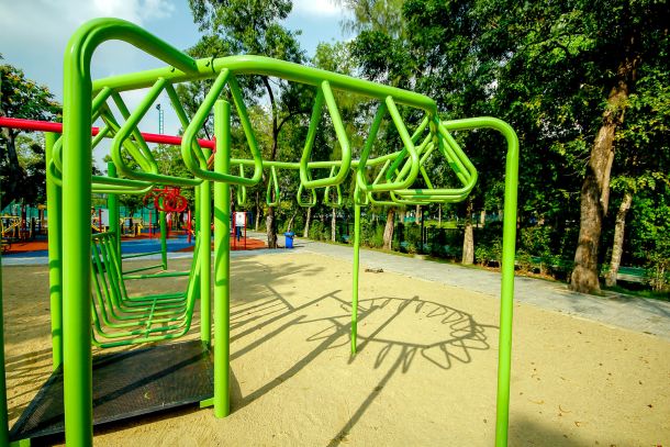 Nach einjähriger Planungsphase ist das neue Klettergerüst auf dem Gelände fertig